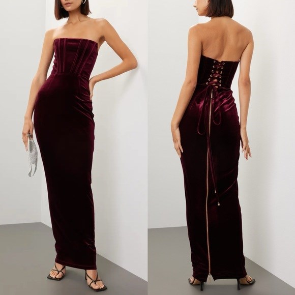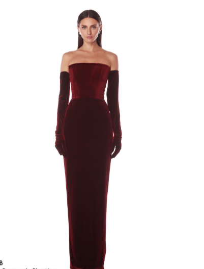 FLORENTINA BURGUNDY STRAPLESS VELVET GOWN