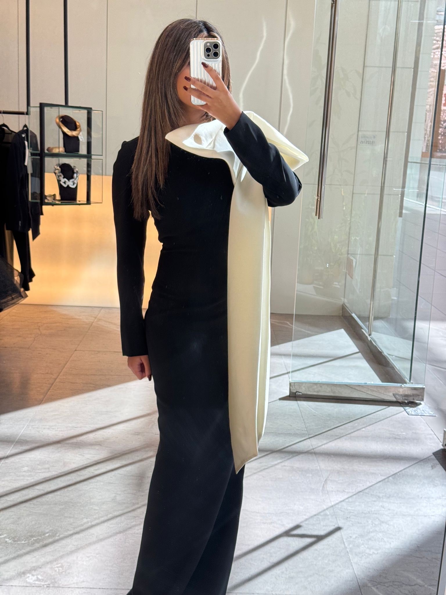 • IRIS LONG SLEEVE WITH BIG BOW DRESS BLACK & WHITE BOW